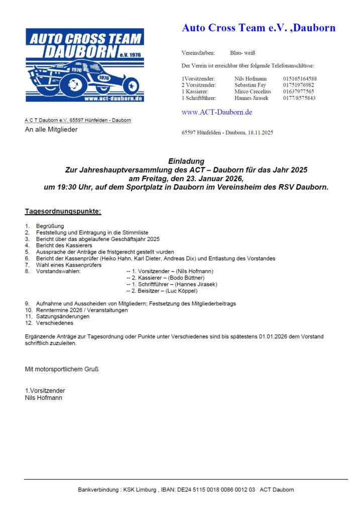 Du betrachtest gerade Einladung zur Jahreshauptversammlung